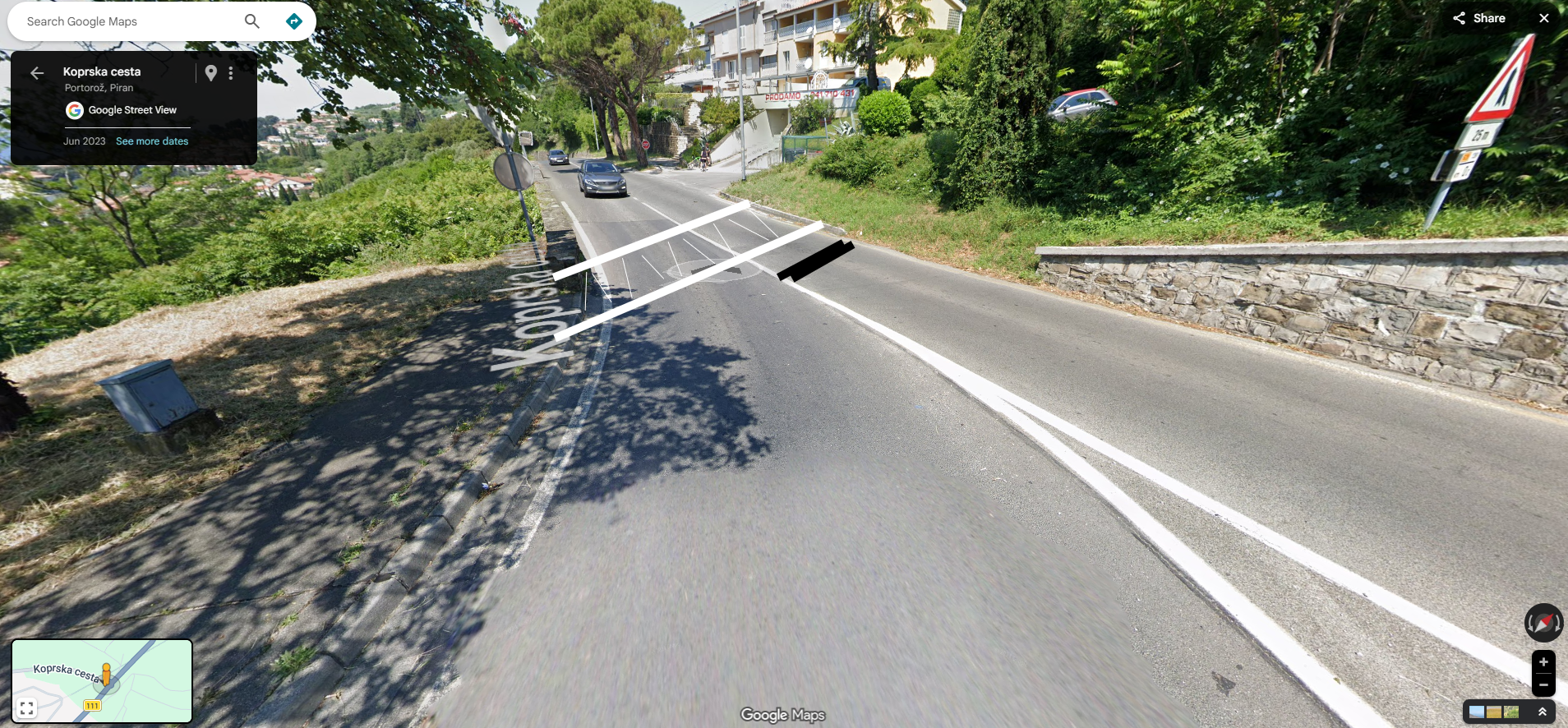 Gre za odcep na Valeti (Portorož), kadar prihajamo iz Šentjan in ko pridemo na glavno cesto, nimamo možnosti varnega prečkanja, da bi prišli do avtobusne postaje na Valeti.